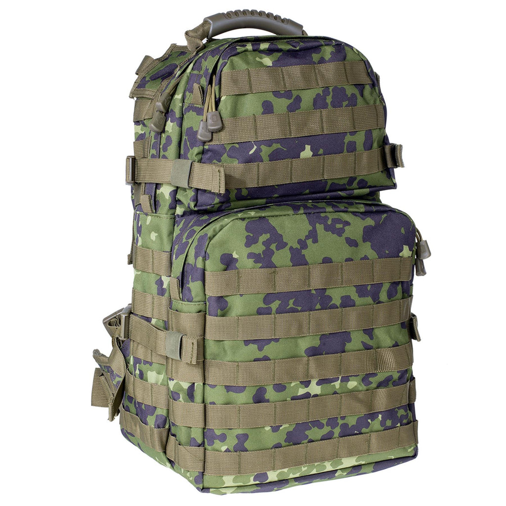 Komfort jest priorytetowo traktowany z wyściełanym pleców, paskami na ramię i bioder, umożliwiając długotrwałe zużycie bez poświęcania komfortu. Taktyczny plecak szturmowy jest wyposażony w ringy D i pętle Molle, zapewniając wszechstronne opcje dołączania dodatkowego sprzętu i akcesoriów taktycznych, dzięki czemu dostosowują się do różnych sytuacji i potrzeb. Również plecak jest wykonany z duńskiego kamuflażu M84, który pomaga ukryć w krzaku lub polu.