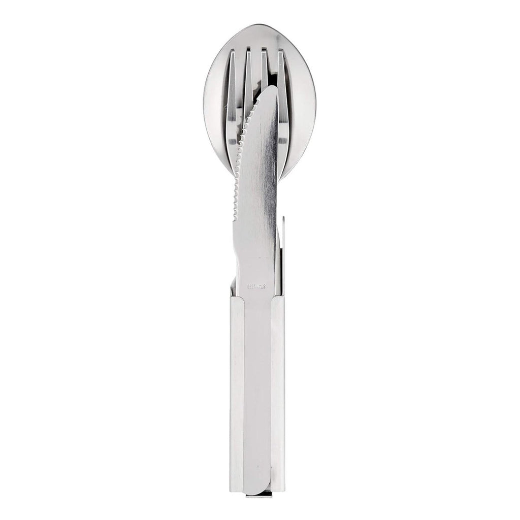 - Dzięki temu kompleksowemu rozwiązaniu przejście z jednej czynności do drugiej jest płynniejsze. Utrzymuj sztućce w porządku i nigdy więcej nie martw się, że zgubisz jakiś element. Zintegrowany otwieracz do puszek zapewnia dodatkową wygodę i pomaga przygotować się na każdą niespodziankę podczas przygody.