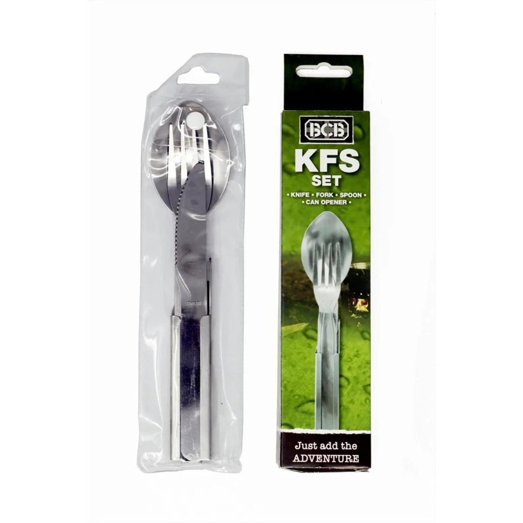 - Zestaw KFS składający się z noża, widelca, łyżki i otwieracza do puszek staje się niezbędnym narzędziem każdego miłośnika poznawania natury. Dzięki temu zestawowi możesz cieszyć się każdym posiłkiem bez kłopotów, niezależnie od tego, czy biwakujesz, uprawiasz turystykę pieszą czy trekking.