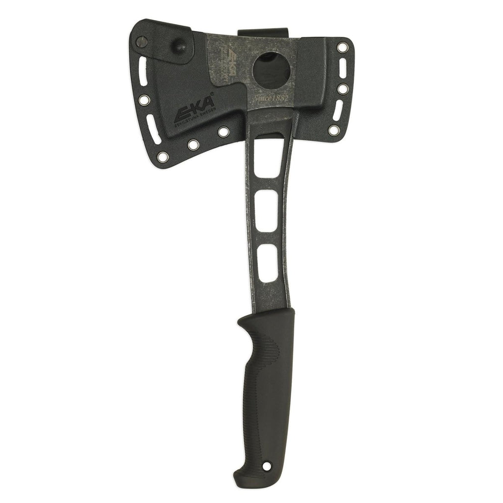 Hatchblade W1 by Eka to idealna kompaktowa rozmiar wokół siekierki zewnętrznej. Mierząc w 12,6 cali, łatwo jest spakować i nosić ze sobą prawie w dowolnym miejscu dla każdej sytuacji. Ma ładny ergonomicznie uformowany uchwyt, który wydaje się wygodny w dłoni i pomaga użytkownikowi osiągnąć maksymalną moc i uderzenie podczas podziału lub wycinania drewna. W głowicy znajduje się również 1 -calowa średnica, która pozwoliłaby użytkownikowi umieścić palcem w celu większej kontroli i przyczepności podczas używania niewielkich, drobniejszych zadań, takich jak tworzenie palika namiotowego, tinder, patyk piórkowy, a nawet przygotowanie jedzenia. Wounding Outdoor Hatchet Hatchblade W1 jest wyposażony w pochwę Kydex, która ma klips pasowy, a także 11 punktów obrotowych, dzięki czemu można go przymocować do prawie wszystkiego.