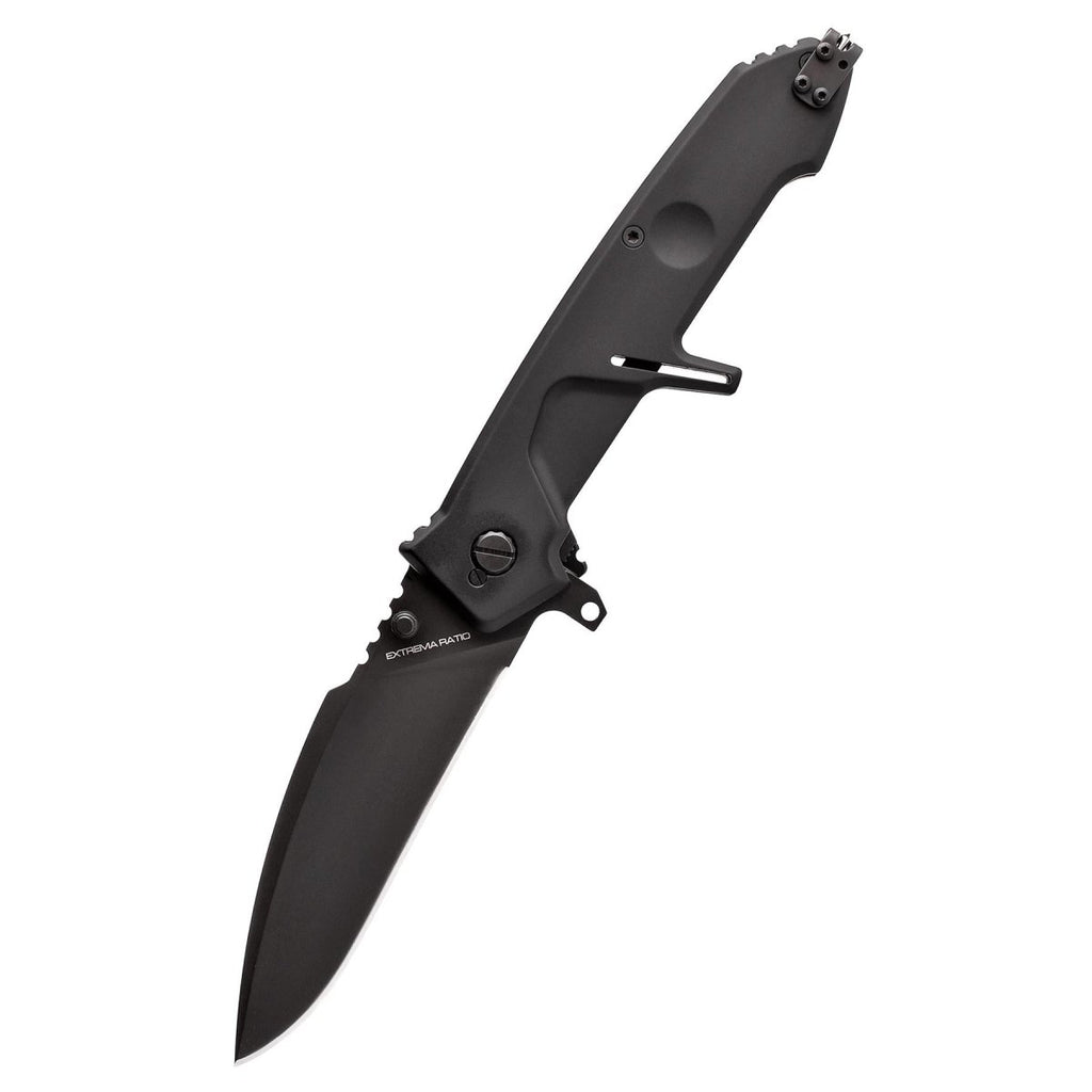 The Nóż ExtremaRatio MF2 CZARNY jest niezawodny nóż składany do użytku na zewnątrz przeznaczony dla codzienne noszenie i przygoda. Jego kompaktowa i składana konstrukcja ułatwia przechowywanie i transport. Można go bez problemu nosić w kieszeni lub sprzęcie.