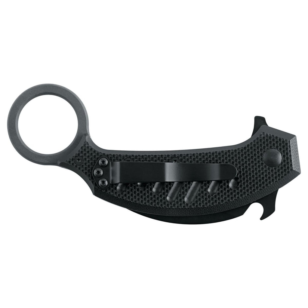 • The Ostrze ze stali nierdzewnej N690Co pozostaje ostry przez długi czas i jest odporny na korozję nawet w trudnych warunkach. Jego zakrzywiony kształt karambitu zapewnia doskonałą kontrolę podczas cięcia, cięcia lub wykonywania szczegółowych zadań. The kamienne wykończenie dodaje solidnego, profesjonalnego wyglądu, jednocześnie chroniąc ostrze przed zarysowaniami.