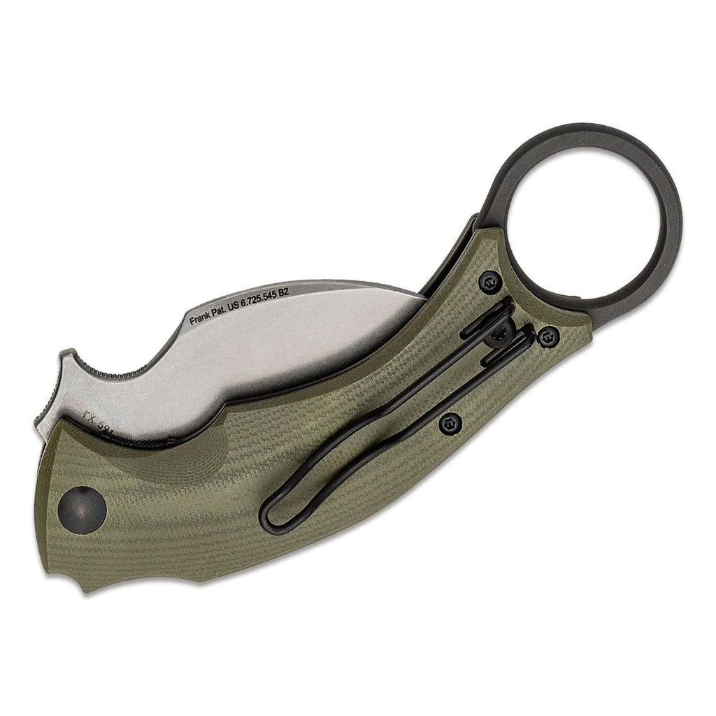 - Jego zakrzywione ostrze typu karambit, wykonane z stal nierdzewna, zapewnia doskonałe zachowanie krawędzi i odporność na korozję. The kamienne wykończenie dodaje trwałość i wytrzymały taktyczny wygląd. To ostrze jest idealne do krojenie, krojenie i zadania precyzyjne w środowisku zewnętrznym lub miejskim.