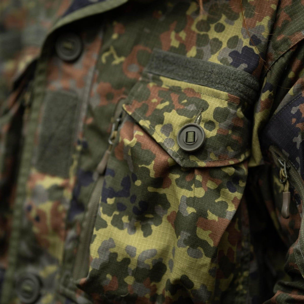 - Kurtka ta łączy w sobie klasyczny kamuflaż Flecktarn z nowoczesnymi funkcjami taktycznymi, dzięki czemu idealnie nadaje się do każdej aktywności na świeżym powietrzu. Niezależnie od tego, czy uprawiasz turystykę pieszą, biwakujesz, czy stawiasz czoła nieprzewidywalnej pogodzie, kurtka taktyczna zapewnia doskonałą ochronę.