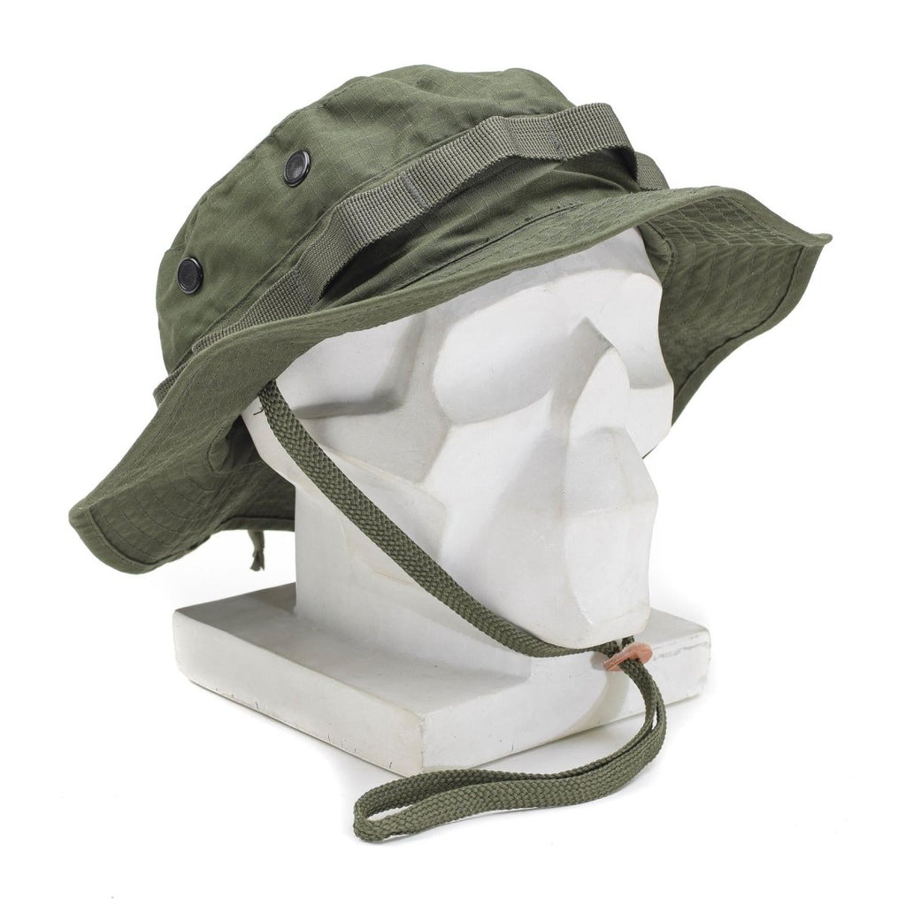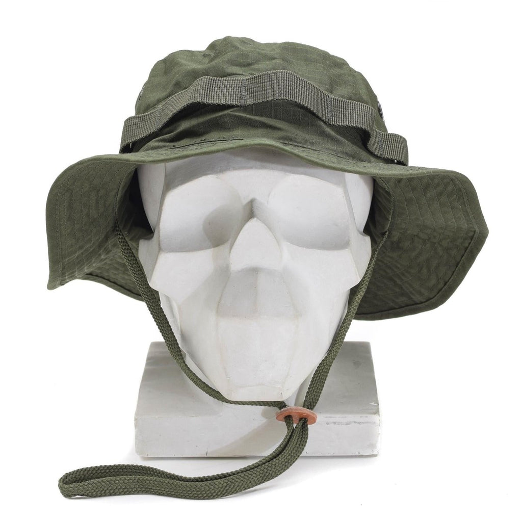 • Oliwkowy kapelusz boonie ma również pętle roślinne. Pętle te umożliwiają doczepienie dodatkowej roślinności do celów kamuflażowych, co doskonale sprawdzi się podczas ćwiczeń wojskowych, polowań czy innych działań typu stealth. Uniwersalna konstrukcja ze sznurkiem zapewnia wygodne dopasowanie do większości rozmiarów głowy.