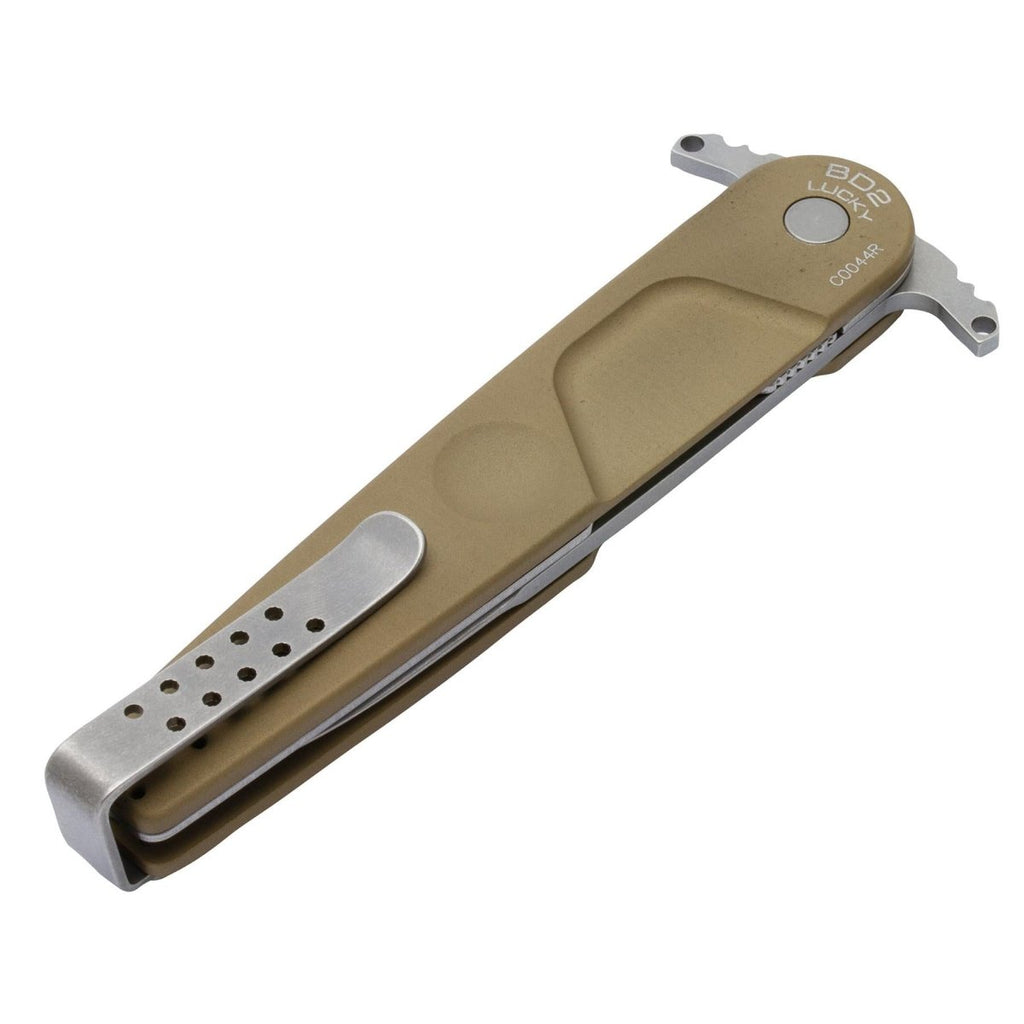 The Nóż składany ExtremaRatio BD2 LUCKY DESERT jest niezawodny i wydajny scyzoryk przeznaczony dla taktycznego i codziennego użytku. Jego Ostrze ze stali N690 Bohler o gładkiej krawędzi oferty wyjątkowa ostrość, zachowanie krawędzi i trwałość.