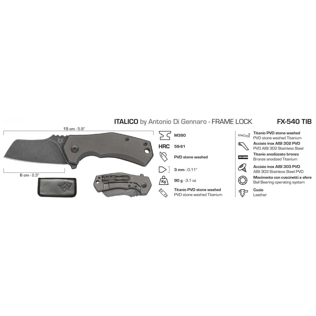 - Ten kompaktowy nóż składany pasuje zarówno do przygód na świeżym powietrzu, jak i codzienne potrzeby noszenia. To łączy funkcjonalność, wygoda i styl w jednym niezawodnym narzędziu. Kunszt Fox Knives gwarantuje, że ITALICO dostarcza długotrwała wydajność i wszechstronność.