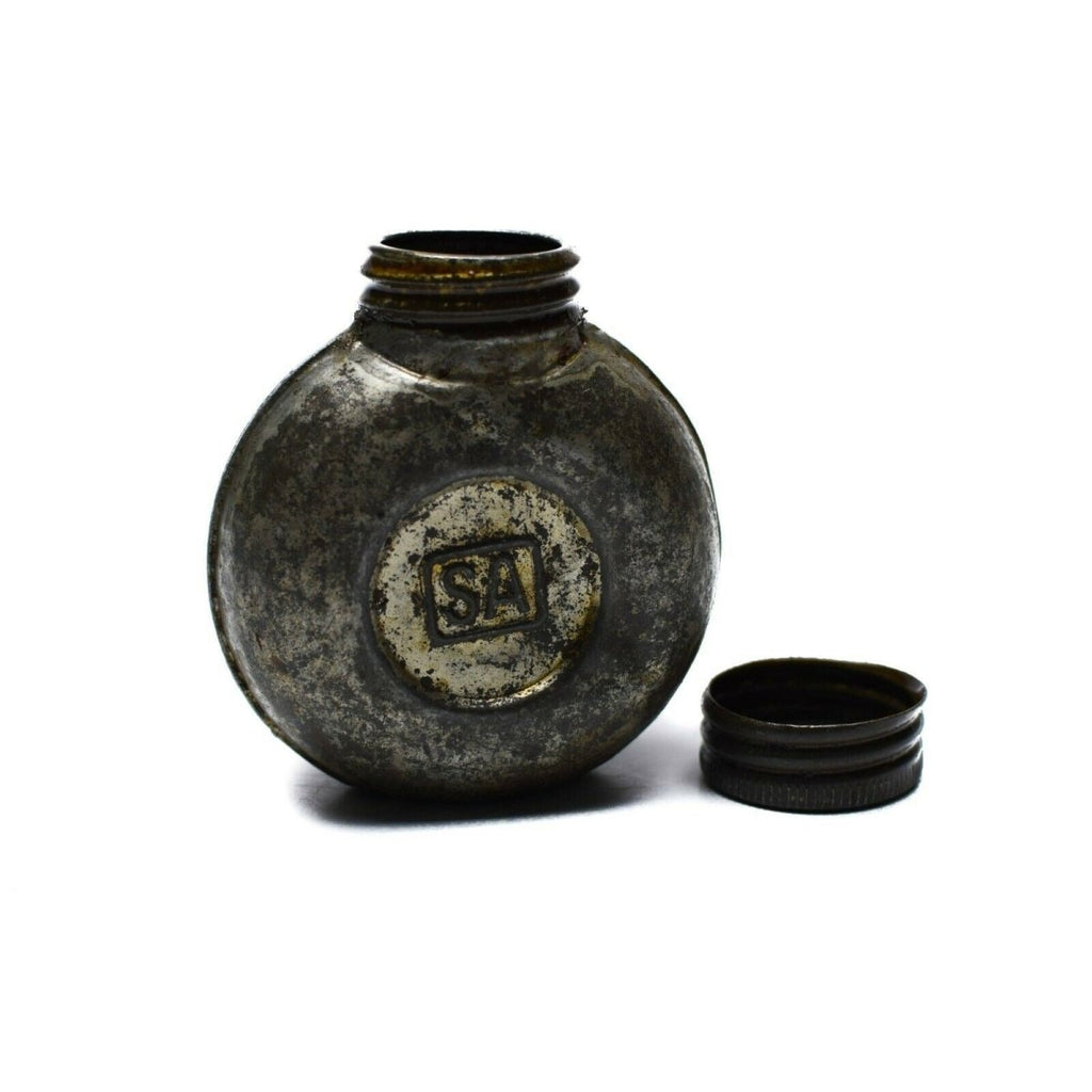 Autentyczne czasy II wojny światowej: Te butelki do olejarki do karabinów to autentyczne artefakty z okresu II wojny światowej, zapewniające namacalne połączenie z wydarzeniami historycznymi. Ciemne metalowe wykończenie i stemple SA na każdej butelce potwierdzają ich autentyczność i znaczenie historyczne.