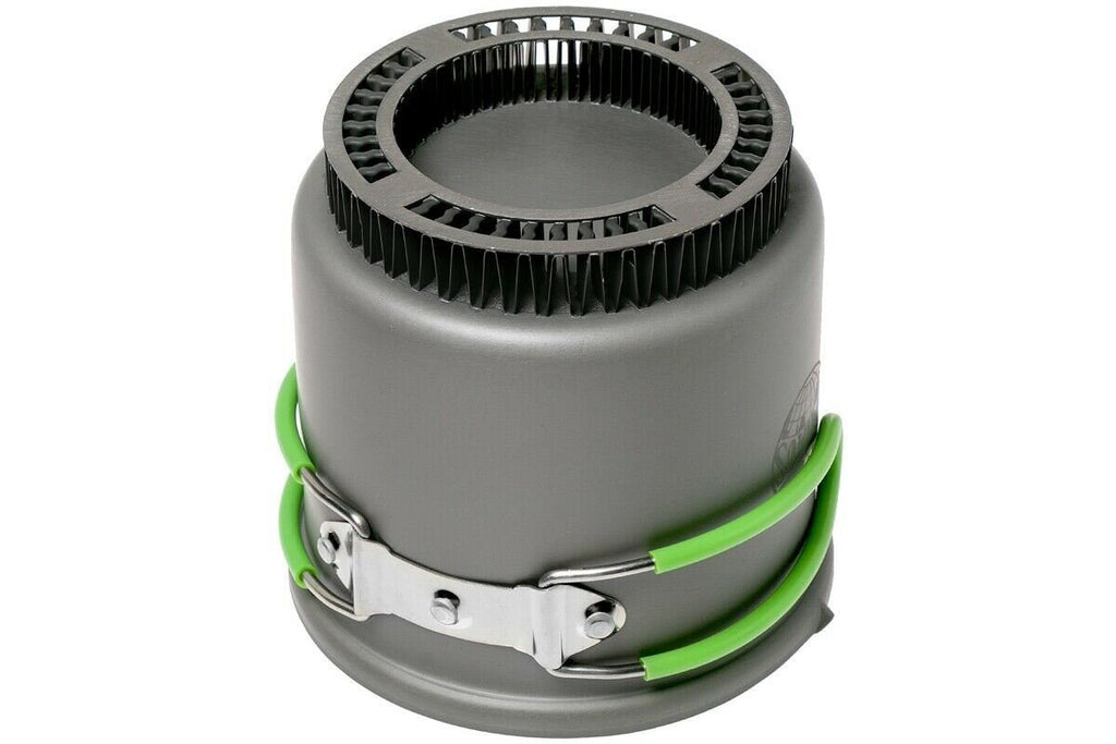 - W zestawie znajdują się trwałe, lekkie patelnie wyposażone w wymiennik ciepła umożliwiający szybsze i wydajniejsze gotowanie. Ta funkcja skraca czas gotowania, oszczędza gaz i zapewnia równomierną dystrybucję ciepła. Dzięki temu systemowi gotowania możesz łatwo przygotowywać posiłki. I ciesz się pysznym jedzeniem niezależnie od tego, gdzie jesteś.