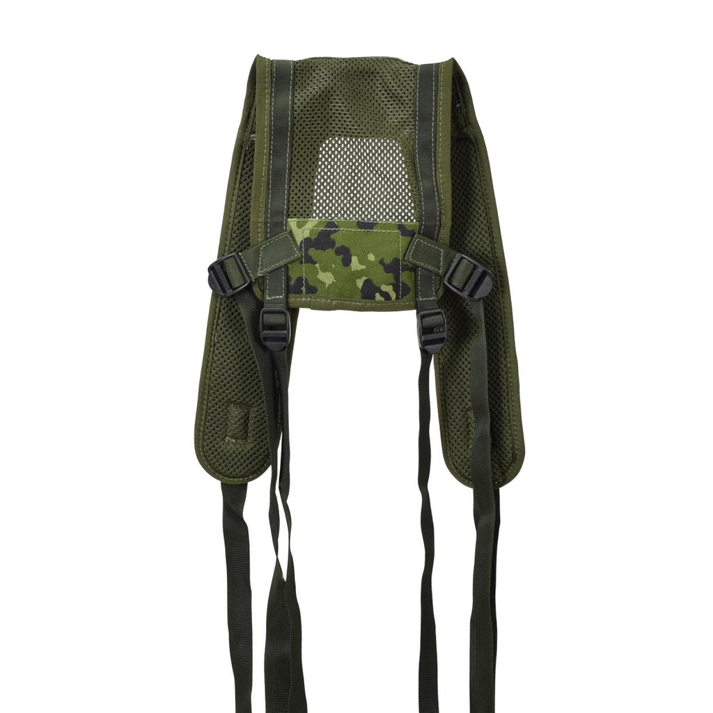 - Wykonana w 100% z poliestru uprząż pozostaje lekka, a jednocześnie oferuje wyjątkową wytrzymałość. Tkanina jest odporna na zużycie i rozdarcia, dzięki czemu doskonale sprawdza się w trudnych warunkach. Kamuflażowy nadruk zwiększa widoczność na zewnątrz, pomagając użytkownikom płynnie wtopić się w otoczenie.