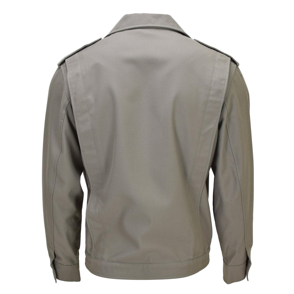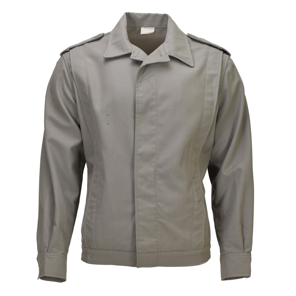 Klasyczna kurtka wojskowa oferuje ponadczasowy projekt, który łączy styl i praktyczność. Ta oryginalna francuska kurtka wojskowa jest w eleganckim szarym kolorze, dzięki czemu jest odpowiednia na różne okazje. Posiada zakładki i elastyczną hemline, zapewniając komfort przy jednoczesnym zachowaniu dostosowanego, eleganckiego wyglądu.