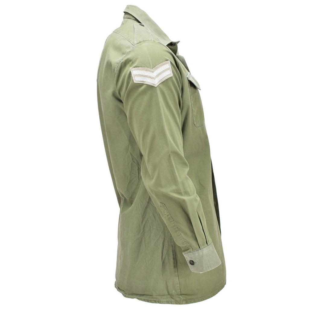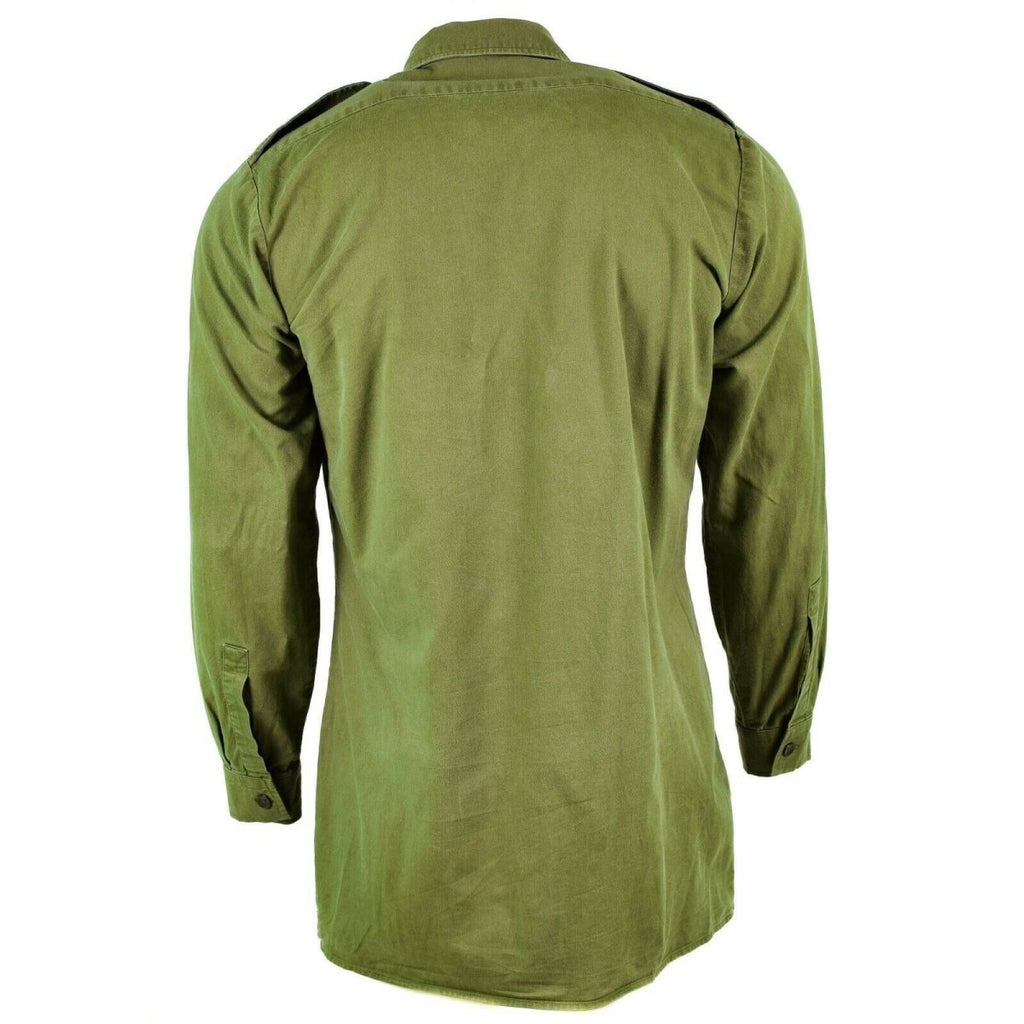 Przedstawiamy autentyczną brytyjską koszulę wojskową w kolorze oliwkowym, ponadczasową część garderoby na oficjalne okazje. Długie rękawy, mankiety zapinane na guziki, naramienniki i kieszenie na piersi sprawiają, że ta koszula emanuje elegancją.