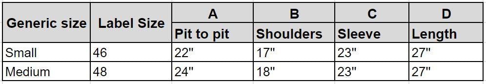 | Mały | 46 | 22'' | 17'' | 23'' | 27'' |