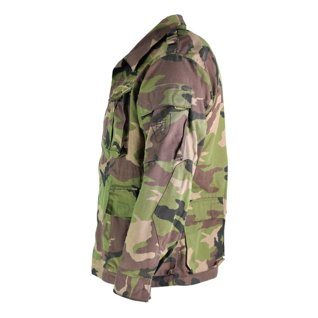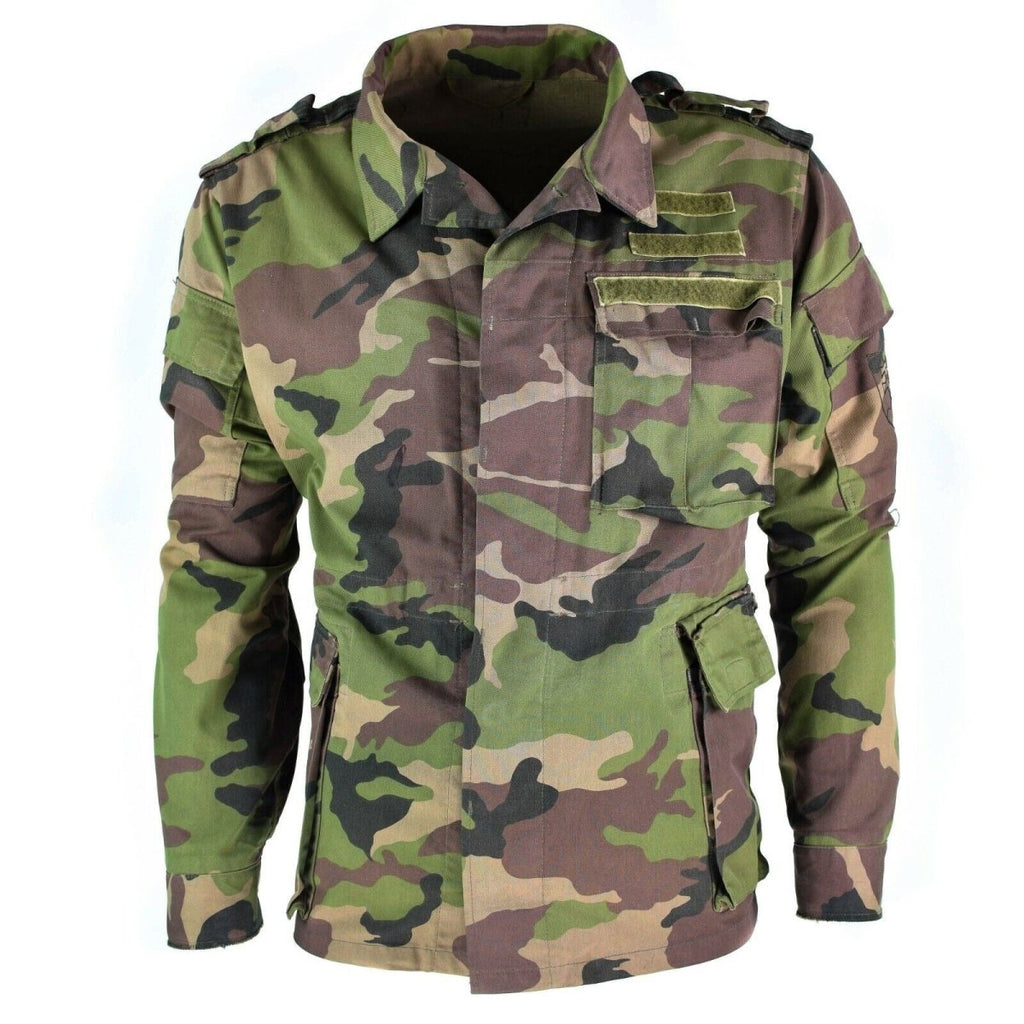 Oryginalna słowacka kurtka polowa M97 Camouflage Vintage Vintage to kurtka używana przez słowackie siły zbrojne pod koniec lat 90-tych. Jest wykonany z trwałego, wodoodpornego materiału i ma wzór kamuflażu, który idealnie komponuje się z leśnym otoczeniem.