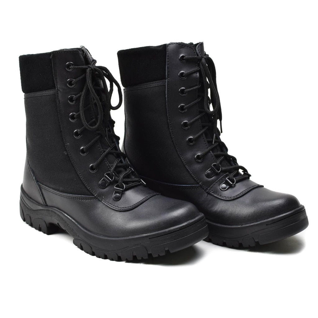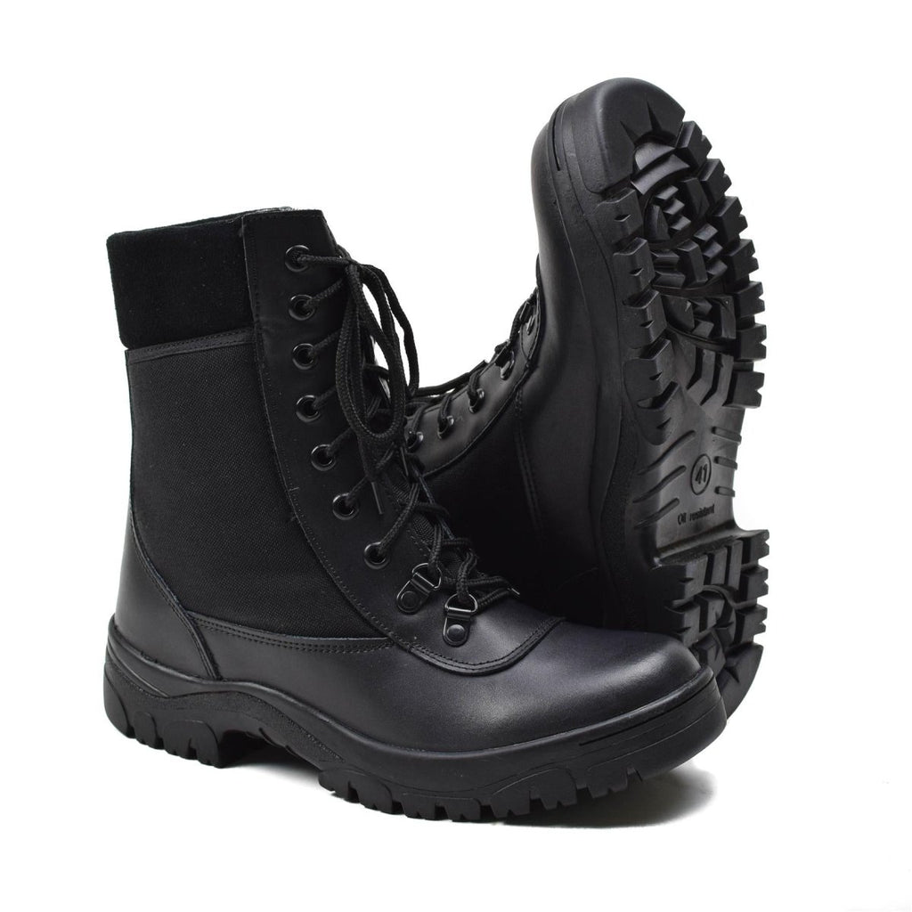 - Skórzana konstrukcja Premium: Co więcej, buty te, wykonane z wysokiej jakości czarnej skóry, zapewniają dopracowany wygląd, a jednocześnie zapewniają trwałość niezbędną do zastosowań wojskowych. Dlatego najwyższej jakości skóra jest zarówno oddychająca, jak i lekka, co przyczynia się do ogólnego komfortu podczas długotrwałego noszenia.