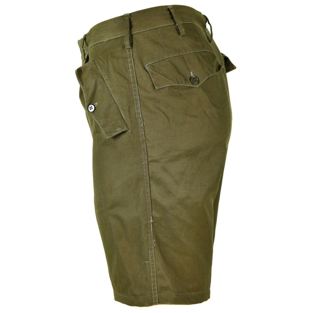Przedstawiamy klasyczne, oryginalne szorty Chino w kolorze oliwkowym w stylu vintage, będące podstawą wojskowej odzieży polowej. Te spodenki ucieleśniają ponadczasowy styl i praktyczność włoskiej armii.