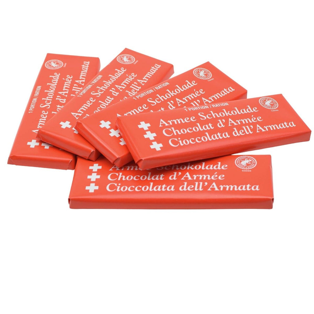 - Idealny na przygody na świeżym powietrzu lub szybki zastrzyk energii, ten smaczny batonik czekoladowy zapewnia satysfakcjonującą przekąskę, kiedy jej najbardziej potrzebujesz. Szwajcarska czekolada wojskowa zawierająca co najmniej 35% kakao łączy bogate smaki z nutą waniliny, zapewniając wspaniałe doznania.