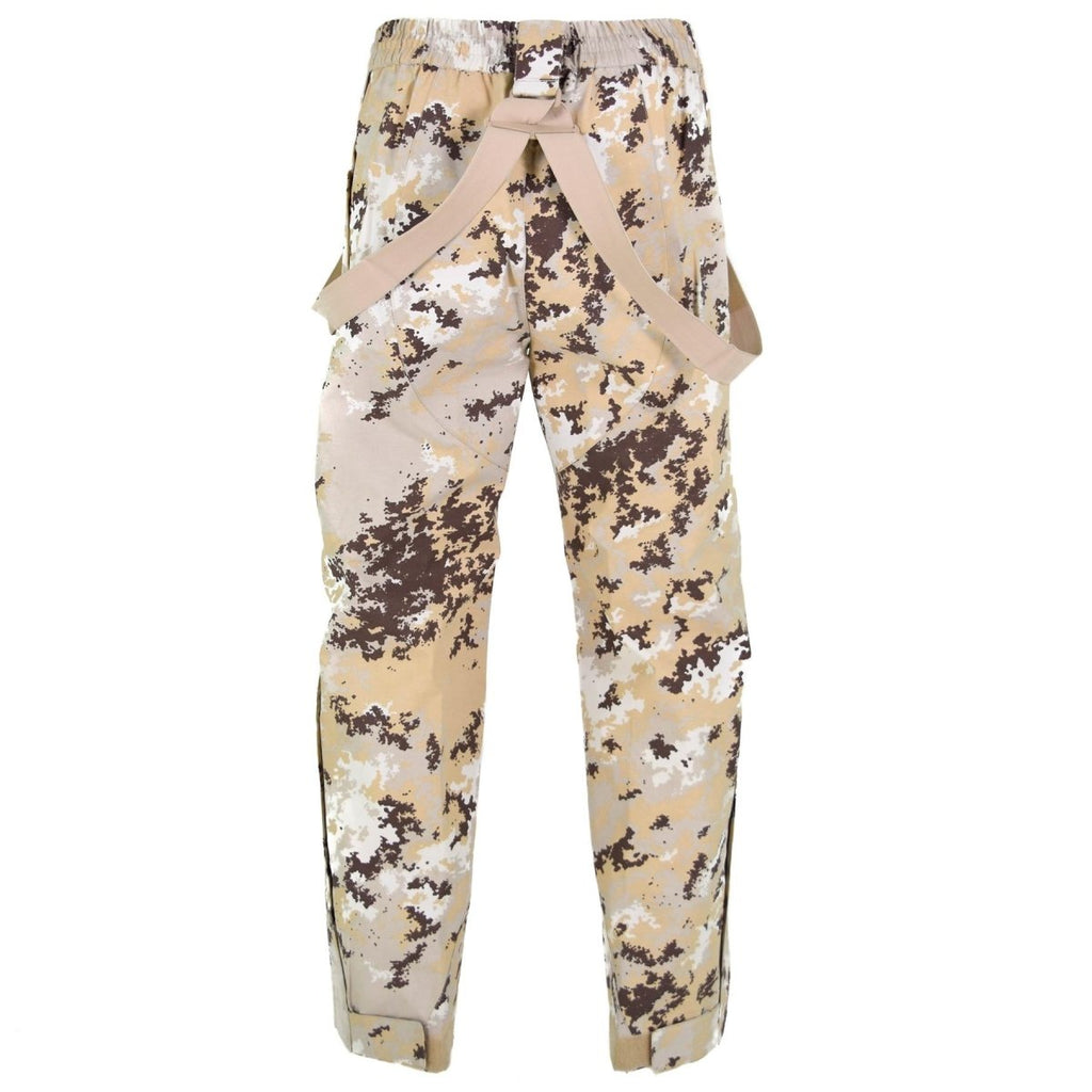 Oryginalne spodnie przeciwdeszczowe na szelkach włoskich sił powietrznych – nowa nadwyżka w pustynnym kamuflażu