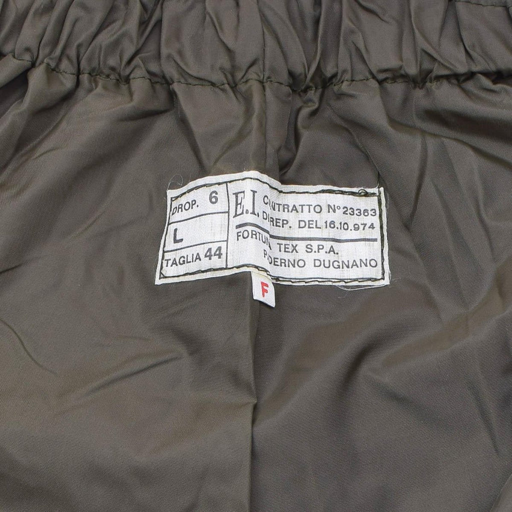 Są to włoskie wojskowe spodnie przeciwdeszczowe, które pierwotnie zostały wydane członkom sił powietrznych armii włoskiej. Są dostępne w kolorze oliwkowym OD i mają podszewkę termiczną dla dodatkowego ciepła i komfortu. Spodnie mają boczne rozcięcia na nogawkach z rzepami, co ułatwia ich zakładanie i zdejmowanie na butach lub innym obuwiu. Spodnie mają za zadanie chronić użytkownika przed deszczem i innymi czynnikami atmosferycznymi, a ich wojskowa konstrukcja zapewnia trwałość i trwałość. Włoskie wojskowe spodnie przeciwdeszczowe można nosić samodzielnie lub na inne warstwy odzieży, aby zapewnić dodatkową izolację i ochronę przed żywiołami.