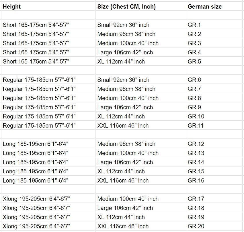 | Do pit | Plecy | Rękaw | Długość wkładu | Długość | |