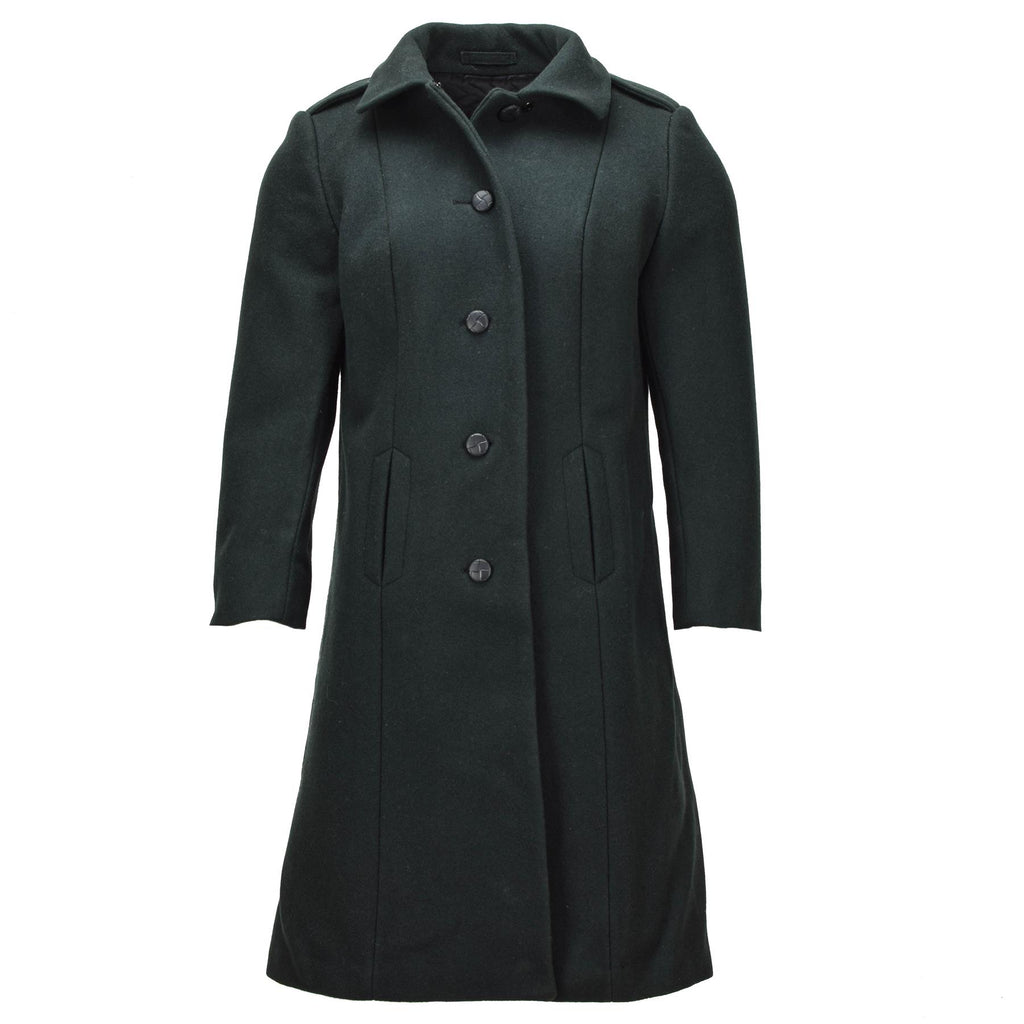 Oryginalny damski płaszcz wełniany armii kanadyjskiej z nadwyżki wojskowej w kolorze ciemnozielonym