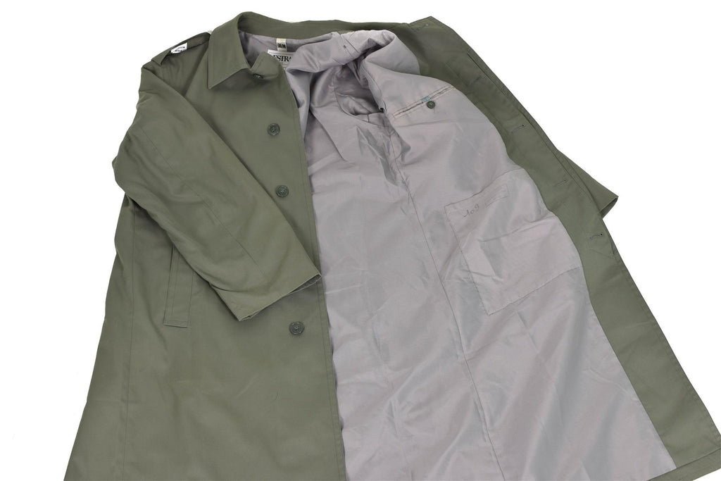 Cofnij się w czasie z oryginalnym francuskim płaszczem deszczowym francuskim, ponadczasowym i funkcjonalnym elementem, który łączy klasyczny styl z praktycznością. Wykonany z wodoodpornego materiału, ten płaszcz przeciwdeszczowy w kolorze oliwkowym jest nie tylko modnym stwierdzeniem, ale także niezawodną tarczą przed żywiołami. Jego jednopasmowa front, wraz z klapą burzową, oferuje elegancki i usprawniony wygląd, który przechodzi próbę czasu.