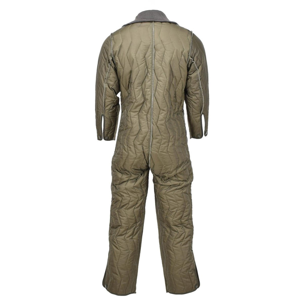 Pikowana wyściółka kombinezonu niemieckiego wojskowego to pikowana podszewka termiczna, która zapewnia ciepło w chłodne dni. Jest przeznaczony do noszenia jako warstwa pod kombinezonem, który jest powszechnie używany przez personel wojskowy w celu ochrony przed trudnymi warunkami środowiskowymi. Podszewka kombinezonu ma guziki na mankietach i nogawkach, które zapewniają pewne dopasowanie i zapobiegają przedostawaniu się zimnego powietrza. Jest również wykonany z materiału w kolorze oliwkowym, powszechnie używanego przez wojsko niemieckie. Ogólnie rzecz biorąc, ten pikowany podszewka do niemieckiego kombinezonu wojskowego jest funkcjonalną i niezawodną opcją dla tych, którzy potrzebują ciepła i ochrony w zimnych warunkach pogodowych.