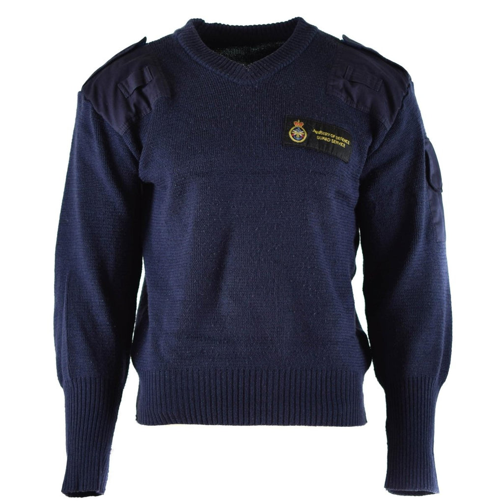 Solidny niebieski sweter to must-have dla każdego, kto szuka wygody i trwałości. Oryginalny, niebieski wełniany sweter Commando British Defence Service z dekoltem w kształcie litery V zapewnia zarówno styl, jak i wydajność.