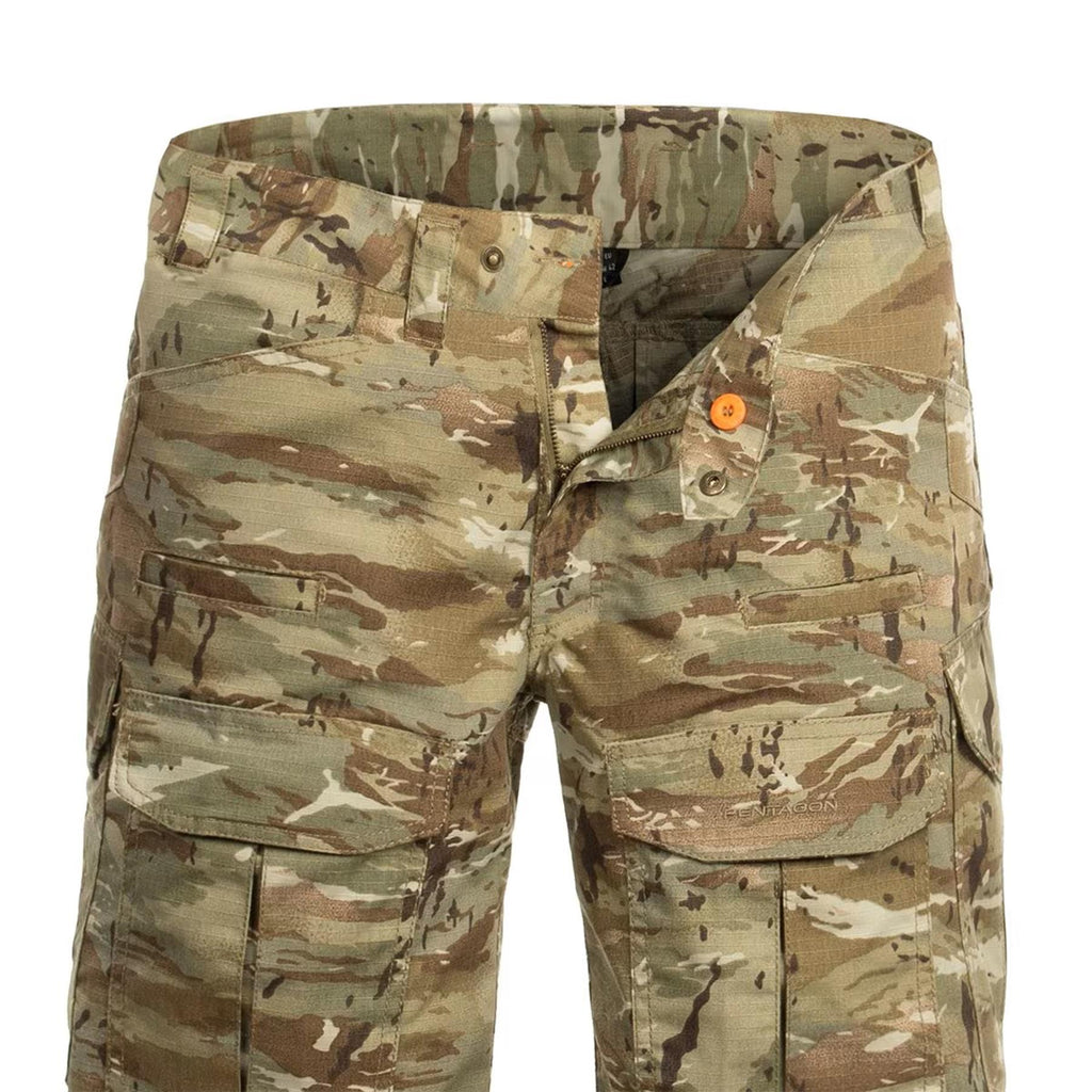 Szukasz trwałych i stylowych szortów na twoje przygody? Przedstawiamy Pentagon Lycos Ripstop Cargo Cargo Wojsko w kamuflażu jaszczurki!