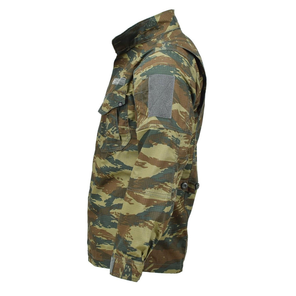 - Dynamiczny wzór kamuflażu jaszczurki zwiększa taktyczny wygląd kurtki, zapewniając jednocześnie wszechstronność w różnych środowiskach. Średni krój i regularny krój zapewniają swobodę ruchu, a zaszewki na plecach zwiększają elastyczność. Regulowane mankiety i wzmocnione łokcie zapewniają dodatkową ochronę, zapewniając długotrwałe noszenie w trudnych warunkach.