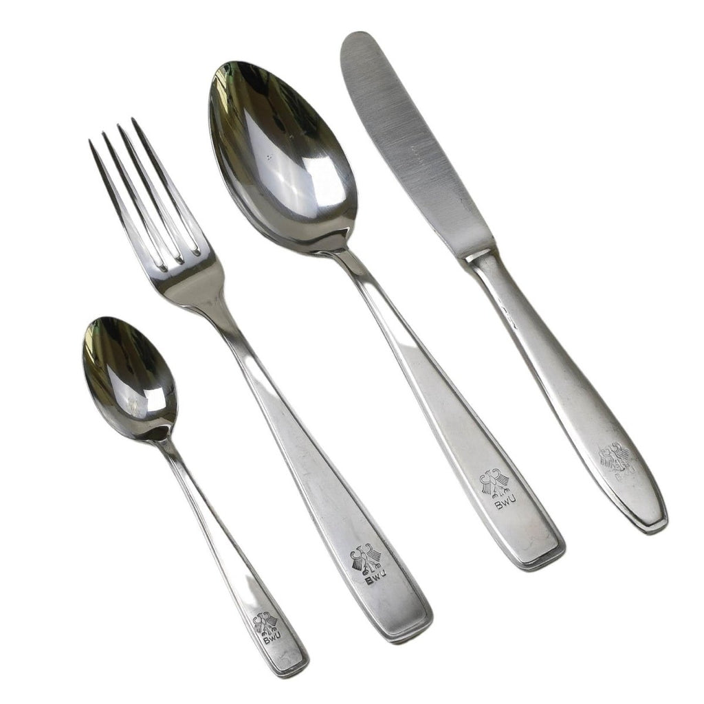 Przedstawiamy niemiecki zestaw przyborów wojskowych, niezbędny dla tych, którzy cenią trwałość i funkcjonalność swojego wyposażenia jadalni.