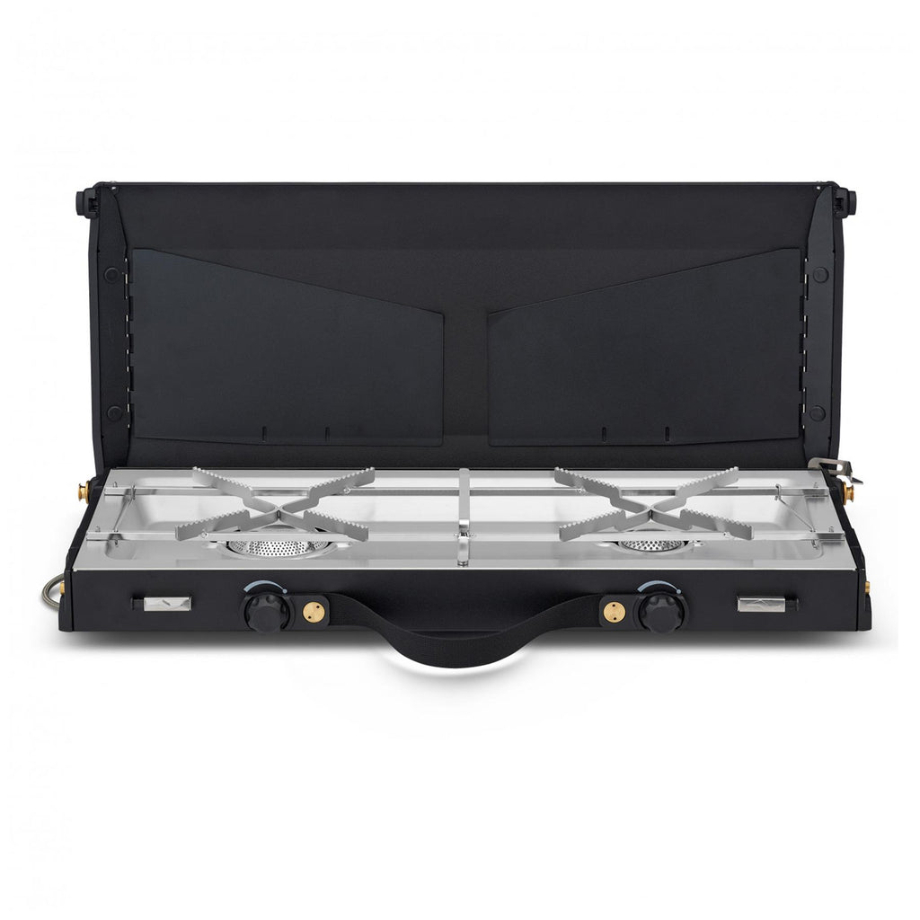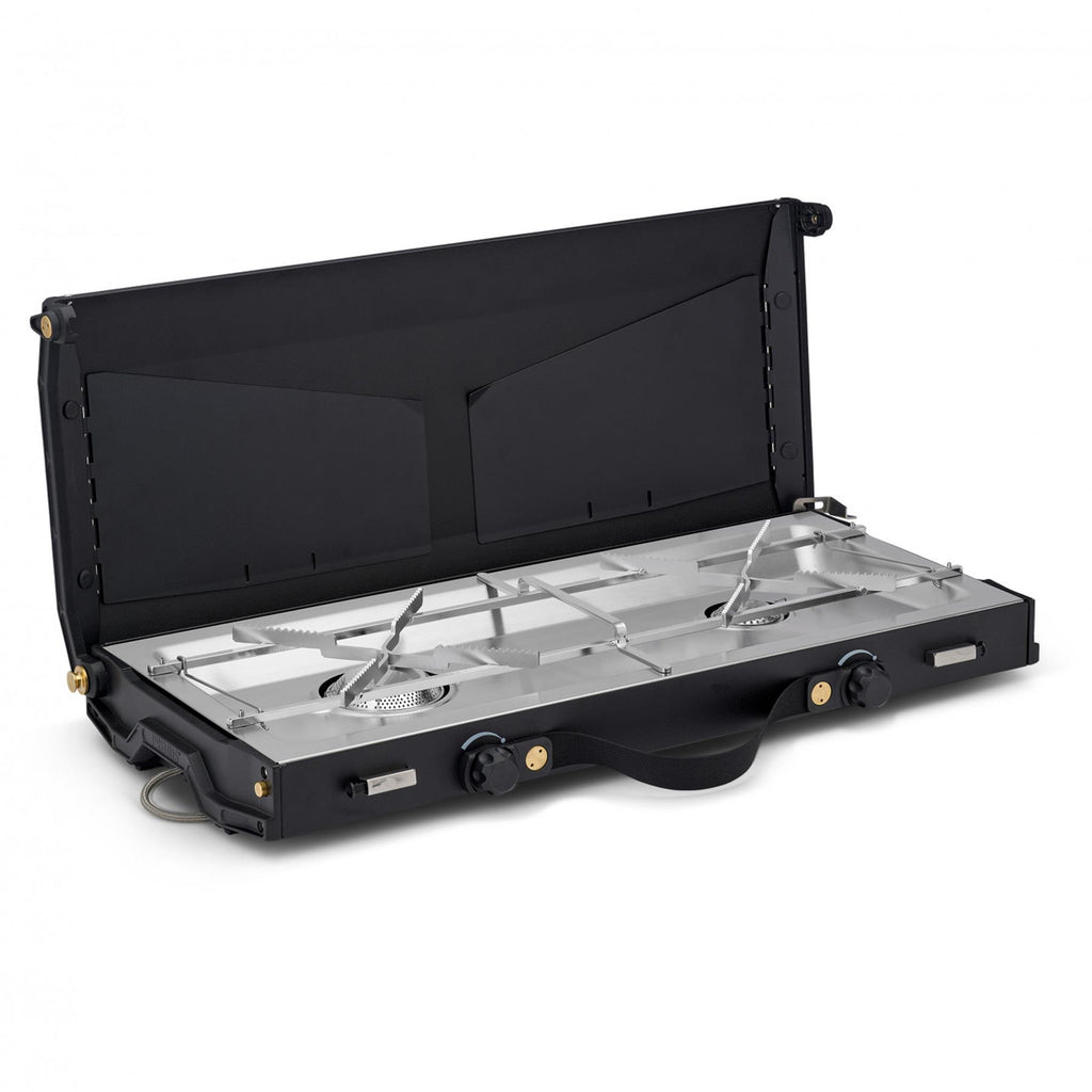 Aby uzyskać jeszcze większą elastyczność, piec jest wyposażony w wyjmowaną pokrywkę. Możesz łatwo usunąć pokrywkę, aby stworzyć dodatkową przestrzeń do gotowania, umożliwiając użycie większych doniczek i patelni. Piec z podwójnym palnikiem Primus Aliki zapewnia potężną, niezawodną wydajność, dzięki czemu jest to konieczne do następnej przygody na świeżym powietrzu.