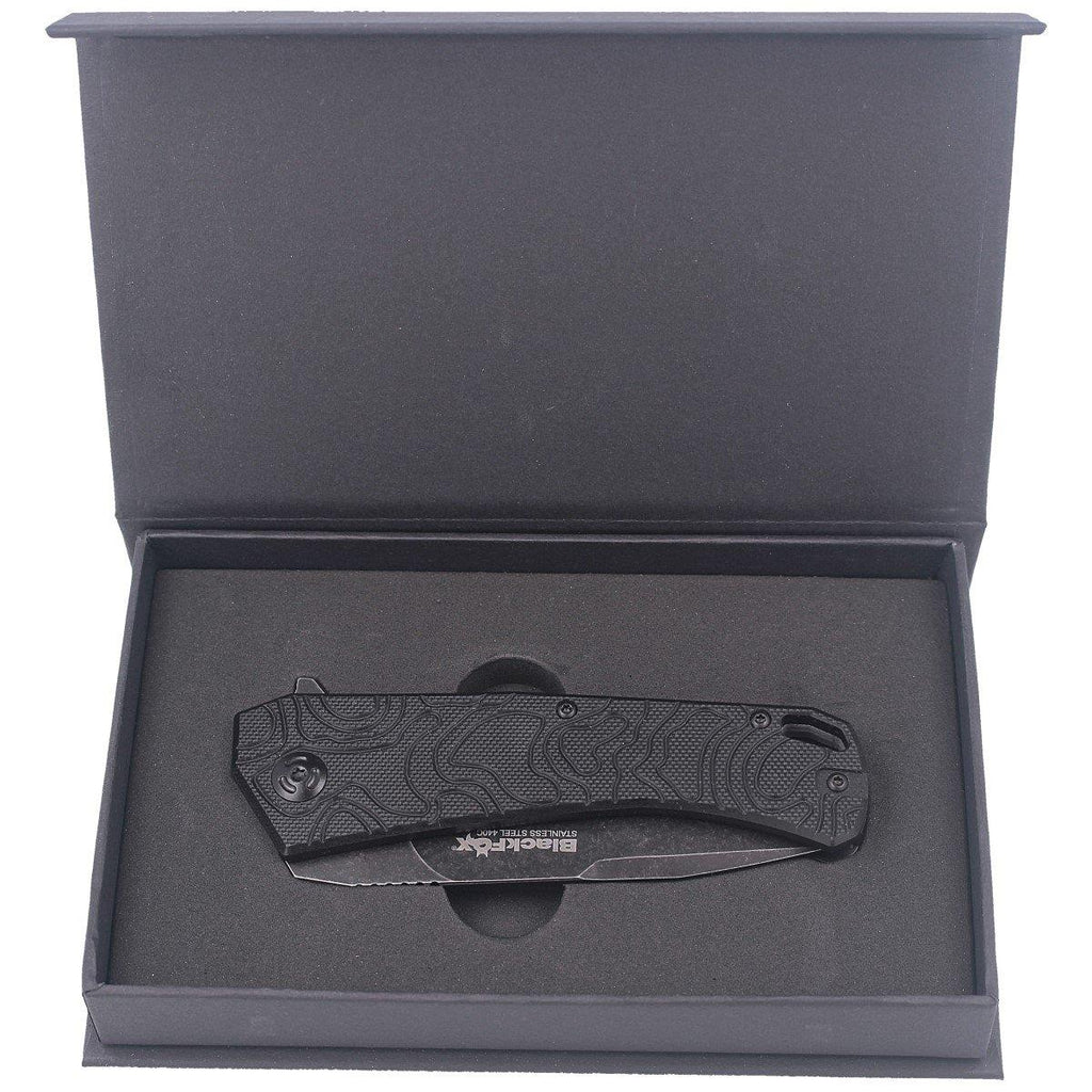 • Jego Czarna rękojeść G10 sprawia wrażenie solidnego i bezpiecznego w dłoni. Teksturowana powierzchnia zapewnia pewny chwyt, niezależnie od tego, czy pracujesz na świeżym powietrzu, czy wykonujesz codzienne obowiązki. A Klips ze stali nierdzewnej 420J2B pozwala bezpiecznie i wygodnie nosić nóż w kieszeni lub na pasku.