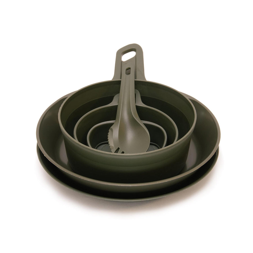 Ten zestaw przyborów na kempingach Wildo Brand to wszechstronny zestaw naczyń zaprojektowanych na przygody na świeżym powietrzu. Wykonane z wysokiej jakości materiałów wolnych od BPA, przybory są trwałe, lekkie i bezpieczne w użyciu. Zestaw Olive Explorer składa się z dwóch płyt, dwóch misek, filiżanki i spork (łyżka kombinacji i widelca).